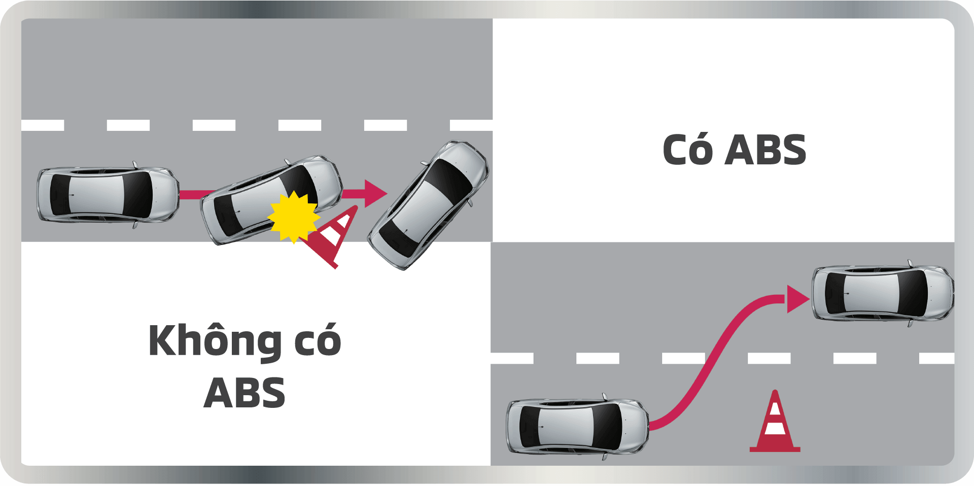 Giúp chống hiện tượng bó cứng phanh đồng thời phân phối lực phanh tối ưu giúp làm chủ tay lái khi phanh gấp trên đường trơn trượt và rút ngắn quãng đường phanh