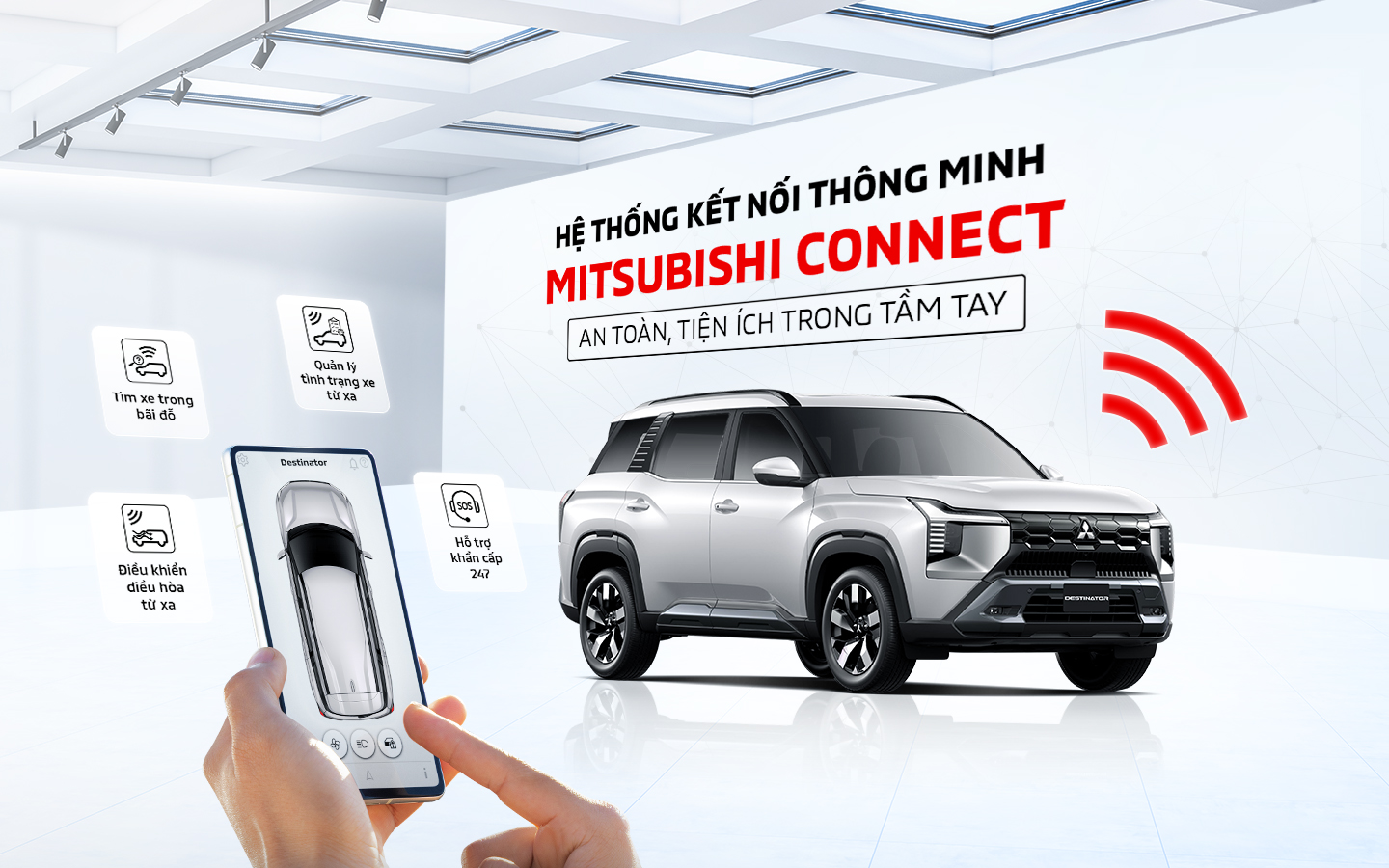 Hệ thống Kết nối thông minh MITSUBISHI CONNECT giúp xe và điện thoại thông minh liên kết thông qua sóng 4G, mang đến giải pháp quản lý và điều khiển xe từ xa an toàn, thuận tiện, đi kèm tổng đài hỗ trợ khẩn cấp 247.